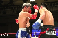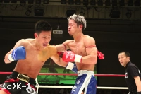 再開されると残り時間が少ないことから両者打ち合いに激しさを増し、左右ショートフックの倉崎に安達はハイキックも織り交ぜ右・左のロングフックで応戦する。判定は30-29(安達)、30-29(倉崎)、30-29(安達)の2-1で安達。攻撃の的確さで上回り勝利した。