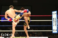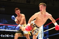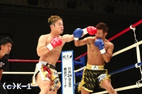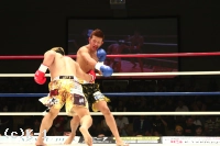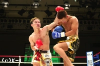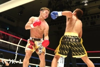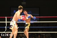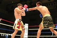 2R、桝本は初回より圧力を増して前に出る。ジャブと左フック、バックステップで距離を作ろうとする足利だが、桝本は止まらずに前へ出てボディから顔に回転させた左フックで足利をとらえフラつかせる。左右ハイキックでも足利を襲う桝本。足利の右ストレートも打ち下ろしで桝本をとらえ、桝本は追い足が鈍る。桝本も左フックをボディ・顔と当てて盛り返す。