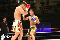 「(試合を振り返って?)ケガで相手が変わってしまったのもあって、対策がいまいちできなかったんですけど、これくらいの相手に判定結果じゃまだまだなので。出直します、押忍。(対戦相手の印象は?)やる前は映像を見てボディが弱いかなと思ったんですが、気持ちが強くて。けっこう、前に前に出られたのであせりました。(今後の目標は?)この内容じゃまだまだなんですけど、11月にK-1の横浜でフェザー級のトーナメントが開かれるので。僕も今年の残りの試合で結果を残して、来年はしっかり食い込んでいきたいと思います。応援よろしくお願いします、押忍」