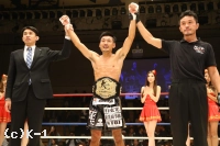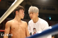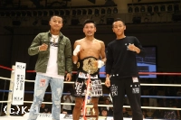 「(試合を振り返って?)晃貴選手、自分とやってくれて本当にありがとうございました。結果的にチャンピオンになれてよかったです。でも、いま会長には『マイナスじゃないけど0点だ。明日から朝練だ』って言われたんで(苦笑)。ちょっと考えながら……、生きていきます(笑)。(試合でやりたいことはできた?)序盤は思ったとおりにできたかなと思いましたけど、最後はバタバタして。晃貴選手はプレッシャーが強かったですね。蹴りもあって、思ったより強かったです。チャンピオンの風格というか、パンチが当たっても全然来たんで。まあ、想定はしてたんですけど、対応できないまま終わっちゃったんで、そこが課題ですね。作戦どおりではありました、動いて。でも、やっぱり蹴らせちゃいましたね、けっこう。ミドルもガンガン蹴らせちゃったので。もっと蹴らせずに、武居由樹くんや江川優生くんじゃないですけど、もらわないでやらないとダメですね。