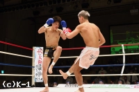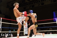 3R、やはり瓦田は先手で攻め、軌道を変えた右のパンチでヒットを上げる。パンチだけでなく蹴りも冴え、右ミドル、右ローと里見をとらえる。しかし後半、里見は左ストレートを当てて反撃開始。だが瓦田もすぐに右ストレートを当て返す。判定は30−28、30−28、30−28の3−0で瓦田。実力上位にあると思われた里見を降した。
