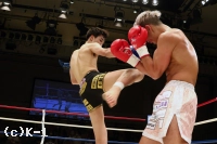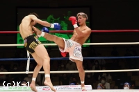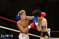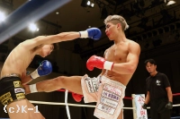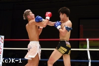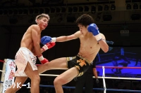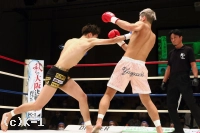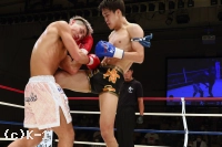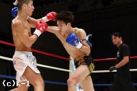 2R、里見が左ボディストレート、瓦田が右ボディストレートと当て、お互いけん制する。瓦田は先手で攻め、右の掛け蹴りを当てるがこれはやや浅い。フィジカルの強さを活かし、右ミドル、そしてそこからの右ストレートと先手の攻めを継続する瓦田。終盤にも右ストレートで里見をとらえる。