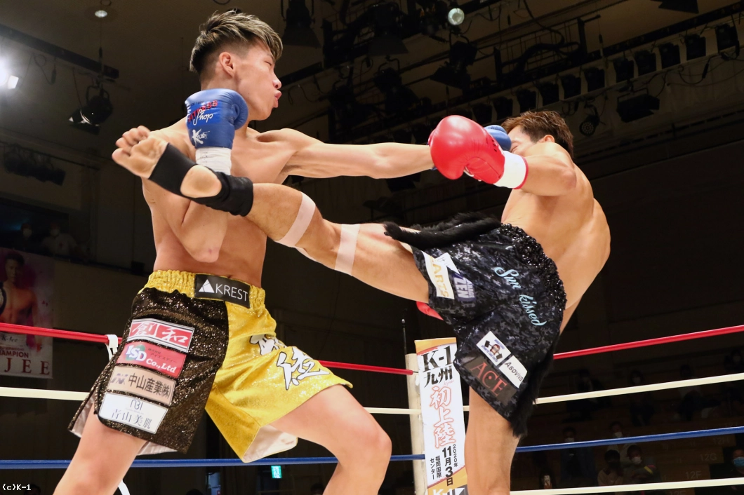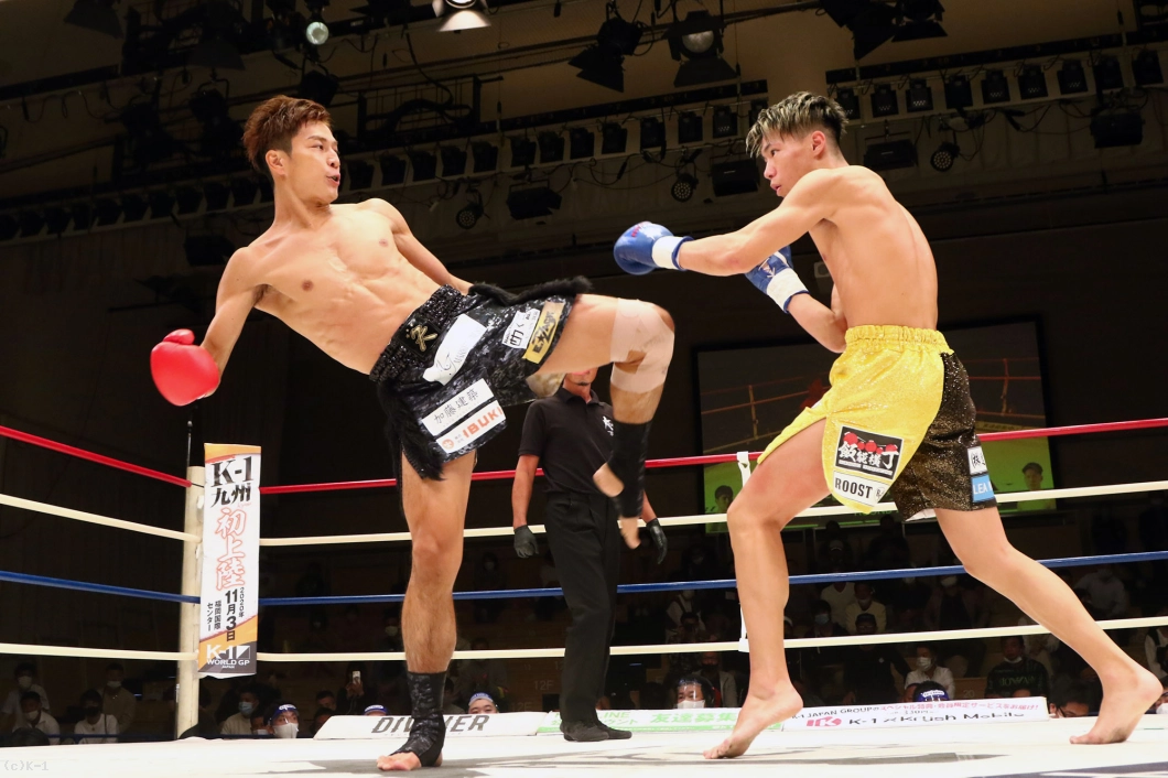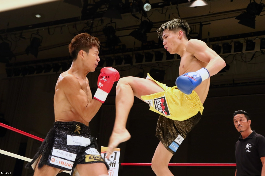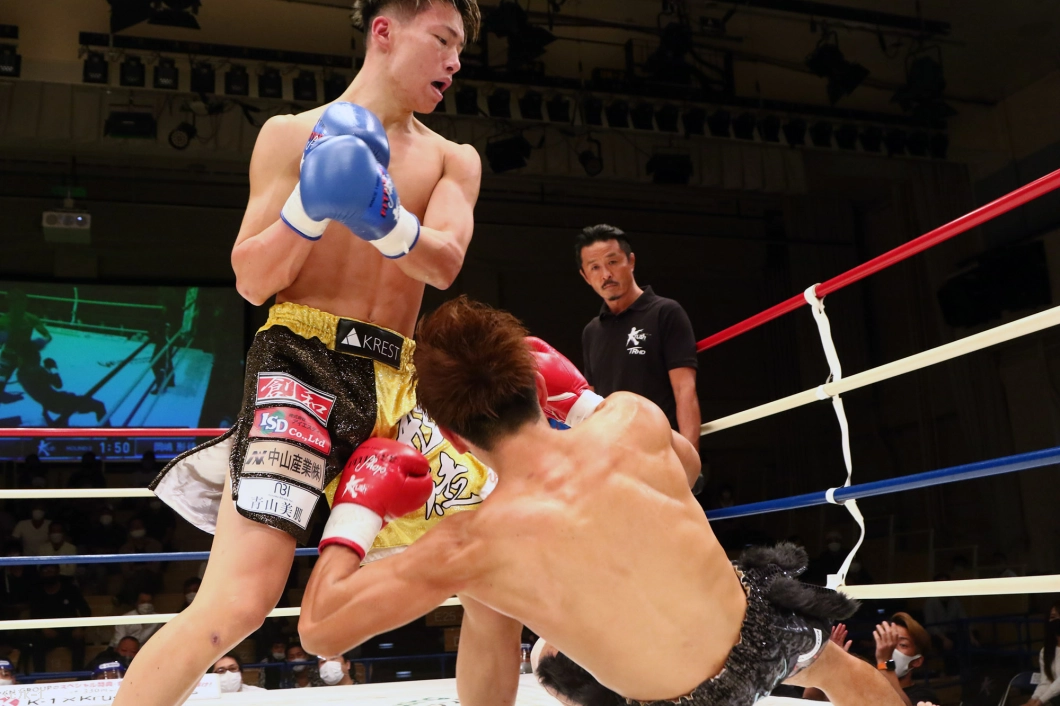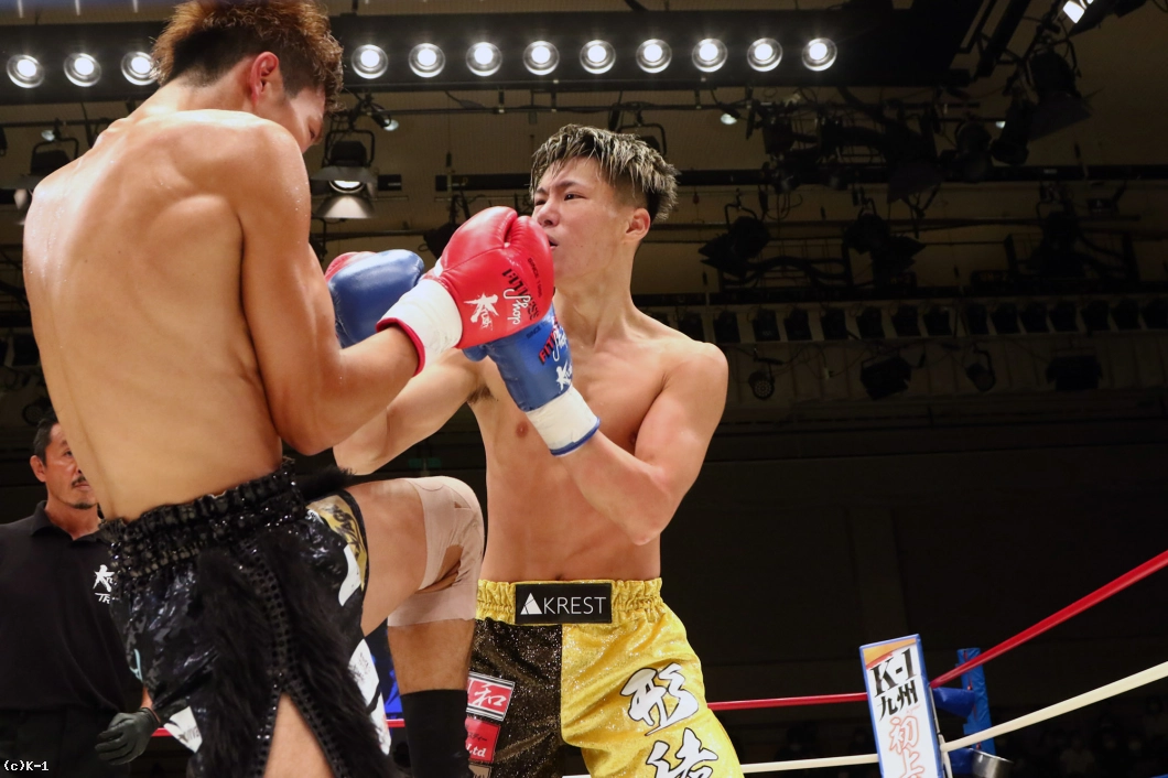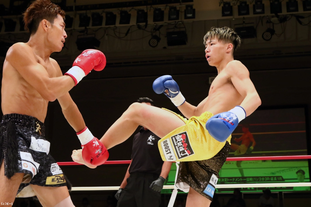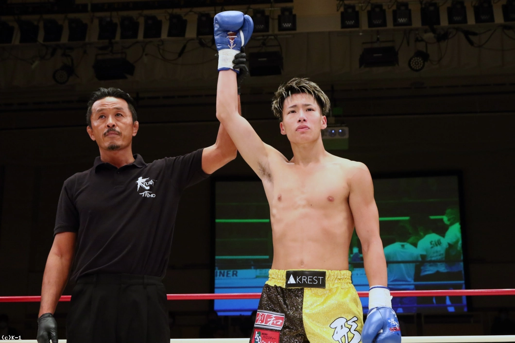 「1Rは様子を見て2・3Rに上げていこうと思ったんですけど……あんまり上がらなかったですね。(対戦相手の印象は?)もっと身長が高くてリーチが長いと思ったんですけど、僕の方がリーチが長くてそこまでやりにくくなかったです。(準決勝は森坂陸と対戦するが?)森坂選手は蹴りを散らす選手という印象です。(今後の目標は?)今日は一戦一勝できたんで、次は2試合勝ってベルトが一番似合う男になります」