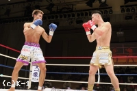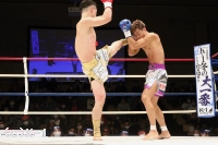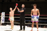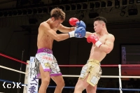 3R、オーソドックスとなった吉岡は右ストレートを当て、池田が前に出てくると左フックをカウンターでヒット。池田が前蹴り、ミドルで出てくると吉岡は正面で受けず、横へのステップとズラして立つことでプレッシャーを受けない。池田はガードを上げて前進してヒザを放ち、長身を活かして吉岡に迫る。フックを振るう吉岡だがガードに阻まれる。