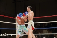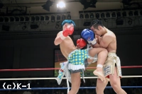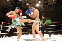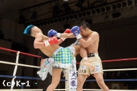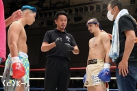 延長R、両者ダッシュで中央に向かい、近い距離での打ち合いを展開。パンチからヒザの新美に対し、森坂はパンチから右ロー。均衡状態が続く。手数の多い森坂はバックブローにパンチヒザと放つが新美のガードを破れない。新美も手数では劣るが時おりガードの合間からストレートを滑り込ませる。判定は3者10-9で新美。この日7Rに及んだ苦闘を制し王者となった。