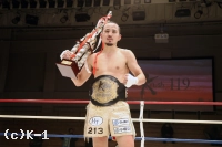 「ほんと小森会長の作戦通りに僕は動いただけで、作戦通りできたので結果がついてきたのかなって思ってます。今ホッとしています。僕にはそんなに技術がないので、距離を取ってとかで戦えないので、近めの距離でもうひたすら当たる攻撃を打ちまくるっていうことしかないので、ひたすらその練習をしてきました。(準決勝を終えた後は)そんなにダメージはなかったです。(延長戦を制した勝因は)前に出続けて手数を相手より出そうと思ったことがよかったと思います。(前に出て攻撃を出し続ける姿が佐藤嘉洋さんを彷彿とさせたが)そう言って頂けて嬉しいですけど、佐藤さんのようにというか、会長の指示通りにやっただけです。(延長になったが)もう決勝だしやるしかないと思っていたので、大丈夫でした。このフェザー級って強い選手がまだいっぱいいるので、そういう選手たちを倒して、僕はK-1のベルトも狙っているので、そこを目指してこのベルトを守りつつ強い選手を倒していきたいです。必要なところはたくさんありますね(苦笑)。今後の目標はもっと強くならないといけないので、僕は組まれたらその選手の対策を始めるので、誰が相手でもレベルアップして倒していける選手になりたいなと思います」