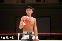 「昨日の計量を再計量でクリアして、対戦相手の志村選手とジムの代表・大沢選手、すみませんでした。久々のKOで勝ててホッとしています。自分これで6連勝、K-1甲子園も連覇したので、来年1月のK'FESTA、ぜひ声お待ちしてます」