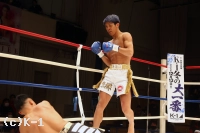 「今回の試合は久々のKO勝ちができて嬉しかったです。(相手の志村は)戦う前は結構ガツガツ来るのかなと思っていたんですけど、戦ってみたら意外と自分の距離で戦ってくれたので、やりやすかったと思います。いま連勝中なので、今後もっともっと勝ち続けて、そのままベルトを獲れるように頑張っていきます。応援よろしくお願いします」