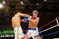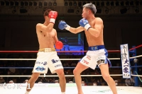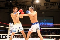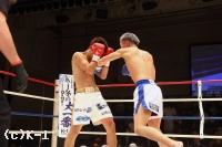 2Rも左パンチのヒットを狙う水津だが、逆に山浦がカウンターの右ストレートでとらえる。そこから山浦は右インローを効かせ、その上でストレート。水津はダメージがあり手数が落ち、山浦はさらに右ストレート、左フックを当てていく。