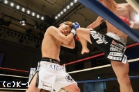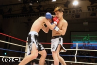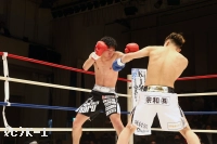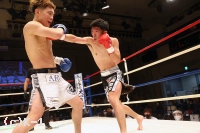 2R、前に出てプレッシャーを掛ける児玉に古宮は左右ハイ、顔面前蹴りと飛ばす。しかし児玉は圧力を緩めない。児玉は古宮のパンチを目先ギリギリでかわし、逆に古宮に左ボディを打ちつける。