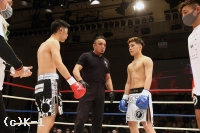 3R、依然前に来る児玉に対し、古宮は左右に回り、そこから隙を見て跳びヒザを放つ。だが児玉はクリーンヒットさせず、左のフックをボディ・顔面と振るっていく。児玉が左フックでとらえれば古宮も右ストレートを当て返す。児玉が左フックと右ストレートで押し勝って試合を終える。判定は30-28、30-27、30-26の3-0で児玉。代理戦争のリベンジを果たすとともに、デビューを勝利で飾った