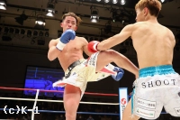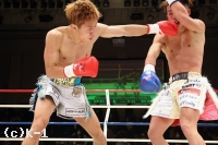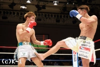 2R、萩原は細かなジャブとストレートから右ミドル。これに対し橋本は距離を詰めるとボディから顔面にパンチを走らせる。萩原もこれをしのぐとパンチを返し、印象を悪くしない。橋本が踏み込んでのボディアッパーをねじ込むが、萩原は再び距離をあけて追わせない。萩原が右ストレートを当てれば橋本も左ストレートを当て返す。