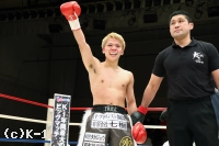 「変なダウンをもらっちゃって会長に怒られたんですけど、次につながる試合だったかなと思います。(対戦相手の印象は?)サウスポーで来ると思っていなくて意外だったんですけど、打ち合えて楽しかったです。(今後の目標は?)今回色々と考えて練習して、今K-1ジム目黒はプロが3人しかいないんですけど、お互いを刺激してアドバイスし合って強くなっているので、チーム全体でみんなに喜んでもらえるように頑張っていきたいです」