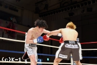 2R、大石はサウスポーにも構えて、前に出て左ストレート、右フックで攻める。藤田はサウスポーの大石に対し、右ストレート、左フックと応戦。さらに出ていかんとするが、ここで大石がカウンターの左ストレートを当て藤田からダウンを奪う。立ち上がった藤田に大石はオーソドックスからの右ストレート、サウスポーからの右フックを打つ。