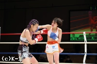 3R、ジャブを連続で放ってKihoを負う森川。Kihoは距離をあけ、右ローと右クロスで応戦。さらに前蹴りも打ち込むが、森川は下がらない。軌道を変えて放つ右ストレートと右クロスをKihoにヒットさせる森川。最終ラウンド、森川が前に出て、Kihoは下がらされてしまう。判定は30-29(Kiho)、30-29(森川)、29-29で三者三様のドローとなった。