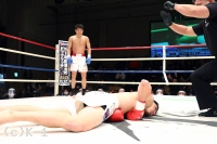 この試合も初参戦の大野を近藤が迎え撃つ形になった一戦。1R、両者オーソドックスでジャブとローを放って様子見する。近藤はそこから前進して圧力を掛け、パンチで大野を下がらせる。ロープを背にした大野だが、右フック・左フックを打ち込み、さらに右フック。これで近藤の動きを止めるとボディに前蹴りを突き刺し、ヒザ蹴り。これで近藤が前のめりに倒れ、大野が見事なKO勝利を収めた。