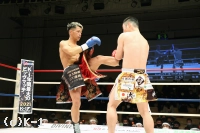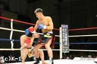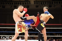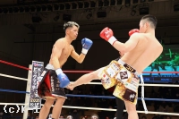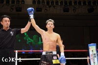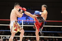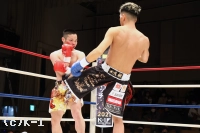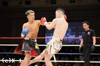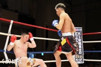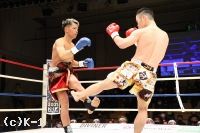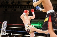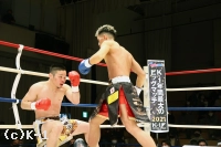 初参戦の佑典を桝本が迎え撃った一戦。1R、佑典はサウスポーから前蹴り、左インローを放って桝本の前進をけん制する。桝本は顔の前にグローブを立てて前進。佑典は跳びヒザを放つも桝本はブロック。しかし佑典がその後の左ストレートを打ち抜き、桝本からダウンを奪う。再開後。佑典は左ミドルからすぐさま左のストレートに繋ぎ、これで桝本を打ち抜き2度目のダウンを奪う。ここで桝本の陣営からタオルが入り、佑典のTKO勝利となった。
