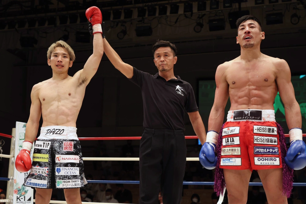 判定は30-29、30-28、30-28の3-0で佐々木。王座防衛に成功した。