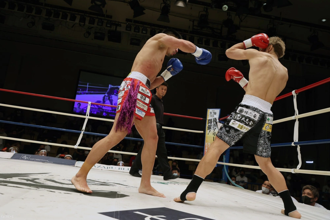 2R、佐々木がロープを背にしたところで平山は右ストレートで切り込むが、佐々木はヘッドスリップして当てさせない。右ロー、左ミドルとやはり佐々木は平山をけん制。探るように試合を進める佐々木は顔面前蹴りで平山をとらえ、続いて右ストレートも決める。佐々木は再びサウスポーからの左ミドルを当て、平山を踏み込ませない。
