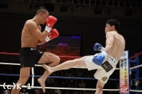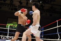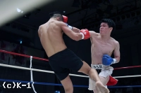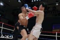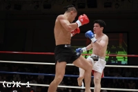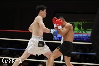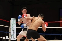 2Rも明戸が歩を進めて加藤を追う。加藤はしかしコーナーを背に連打を集められても、ボディワークを駆使してクリーンヒットさせない。押されていた加藤だが、ラウンド後半はジャブとヒザで逆に明戸を下がらせる。