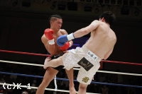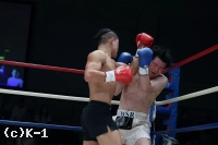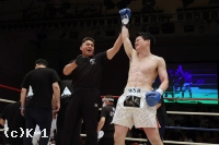 3R、減点を背負っている明戸は前に出るが、加藤は明戸が放った右ストレートの直後に左フック。これで明戸をバタリと倒しKO勝利した。