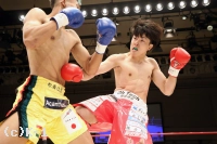 「山際選手は元チャンピオンなんで絶対勝ちたいと思って必死に練習していたので勝てたことはホッとしています。(対戦相手の印象は?)すごく技術があって、最後に倒しに行こうとしたけどうまいことやられてしまって…強かったです。(KO記録は途切れたが?)初めて判定決着だったんですけど、KOしないと物足りないというか試合をした実感がないというか。お客さんにも物足りなさを残したと思うので、お客さんを楽しませられるようにKOできる選手にならないといけないと思います。(今後の目標は?)チャンピオンになリベンジたいのでもっと強い選手と戦って、応援してくれる人のためにも必ず勝って恩返ししたいと思います」