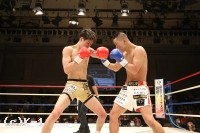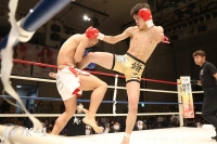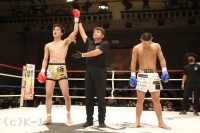 3R、瓦田は前に来る昇也に右ボディフックを打ち込んで下がらせる。そして飛びヒザ、右フックと昇也を押していく。昇也も左フックに力を込めるが瓦田はかわして空振りさせる。瓦田はパンチ&ヒザで昇也を攻め試合を終える。