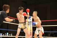 1R、瓦田はミドルを蹴りつける。昇也はサウスポーからの左フックを効かせ、そこから右・左とフックを連打。瓦田はガードを固める。瓦田は落ち着きを戻すとジャブ、ロー、ボディフックと昇也を攻める。さらにボディへのヒザ、右ミドルと瓦田は効かせる。瓦田は右ストレート、左ボディフックとパンチを回転させる。