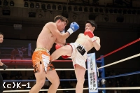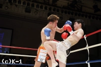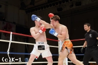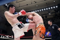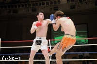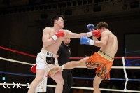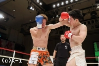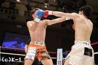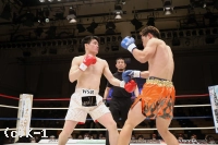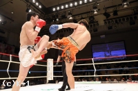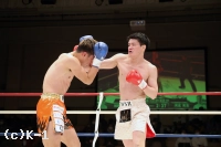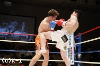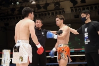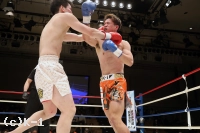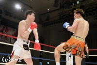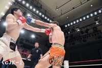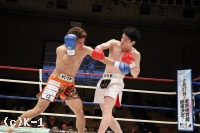 2Rも河北は開始からすぐ前に出ていく。加藤はジャブ、ボディへのヒザ、カーフキックと迎え撃つ。左フック、右アッパーとパンチを打ち分ける加藤。河北が圧力を落とさず追っていくが、加藤もフットワークを駆使して圧力を正面から受けない。右アッパー、ジャブ、ボディへのヒザと加藤は巧みに攻撃を散らす。