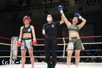 3R、前に出る真美だが、美伶はそこに左フックをカウンターで合わせ、カーフキックも打ち込む。真美は右ストレートを伸ばしつつ前に出て行くが、美伶は左フック・右ストレートとカウンターで返していく。判定は30-27、30-26、30-26の3-0で美伶。ダウンを奪い勝利した。