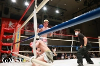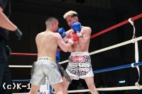 2Rが始まっても目黒はやはり前に出て松山を追う。松山はフットワークで距離を作り、ローとヒザを当てるが、目黒はロープ・コーナーに追い込んでボディから顔への連打を走らせる。松山が距離を作っても目黒は無骨に追っていく。左ストレート、顔へのヒザに力を込めた松山は、続けて左ストレートから返した右フックでとらえ目黒をダウンさせる。