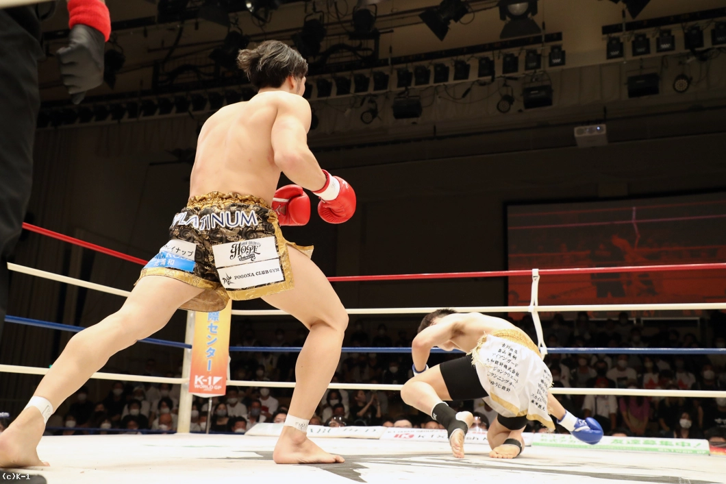 「計画していた作戦で、計画通りパンチでいかず足を効かせてから倒すという試合ができたかなと思います。(相手の印象は?)手足が長いので蹴ってくると思っていたら、実際に蹴ってきて。その対策をしていたので練習通りでした。(今後の目標は?)連敗から脱出して、まずはKrushのチャンピオン目指して頑張っていきます」