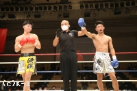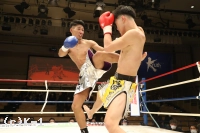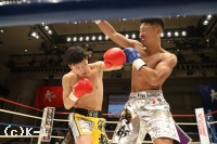 再開すると積極的にローを放つ豊田に対し阪本は右フック・左ストレートとパンチを振るう。だが豊田も坂本のパンチをグローブでブロックしクリーンヒットさせない。
