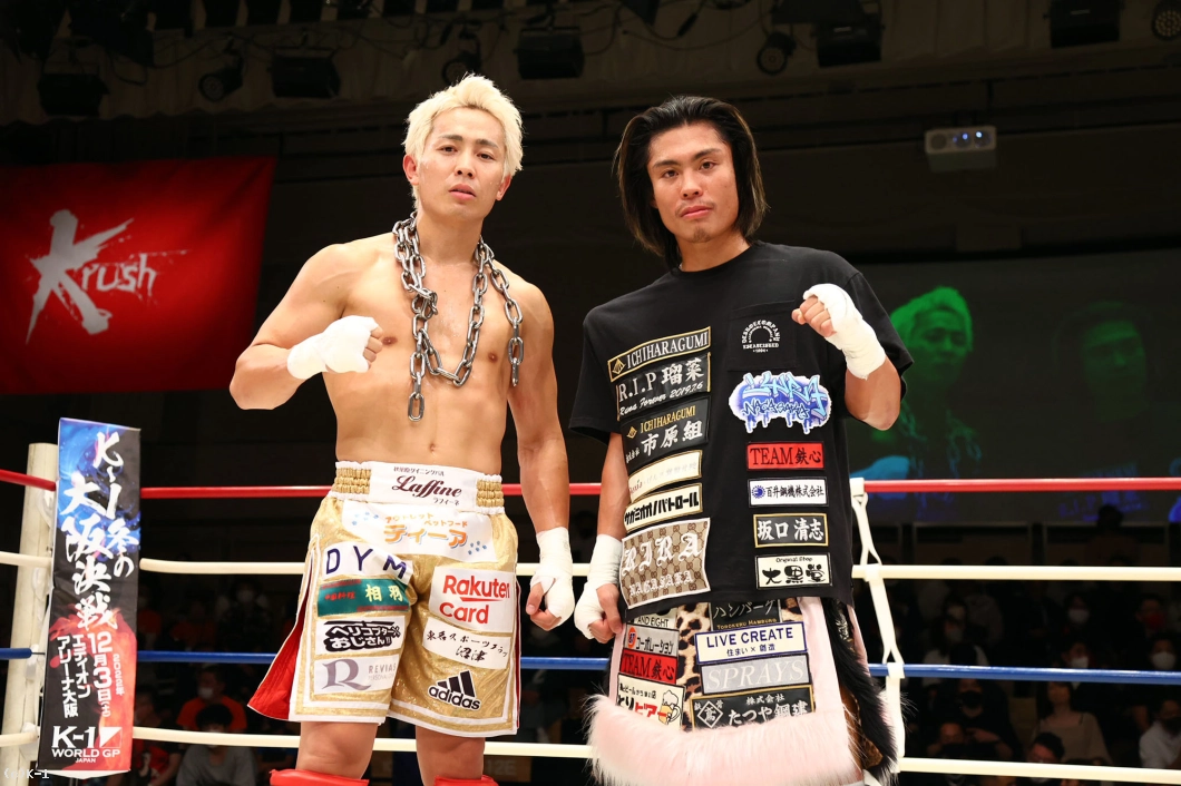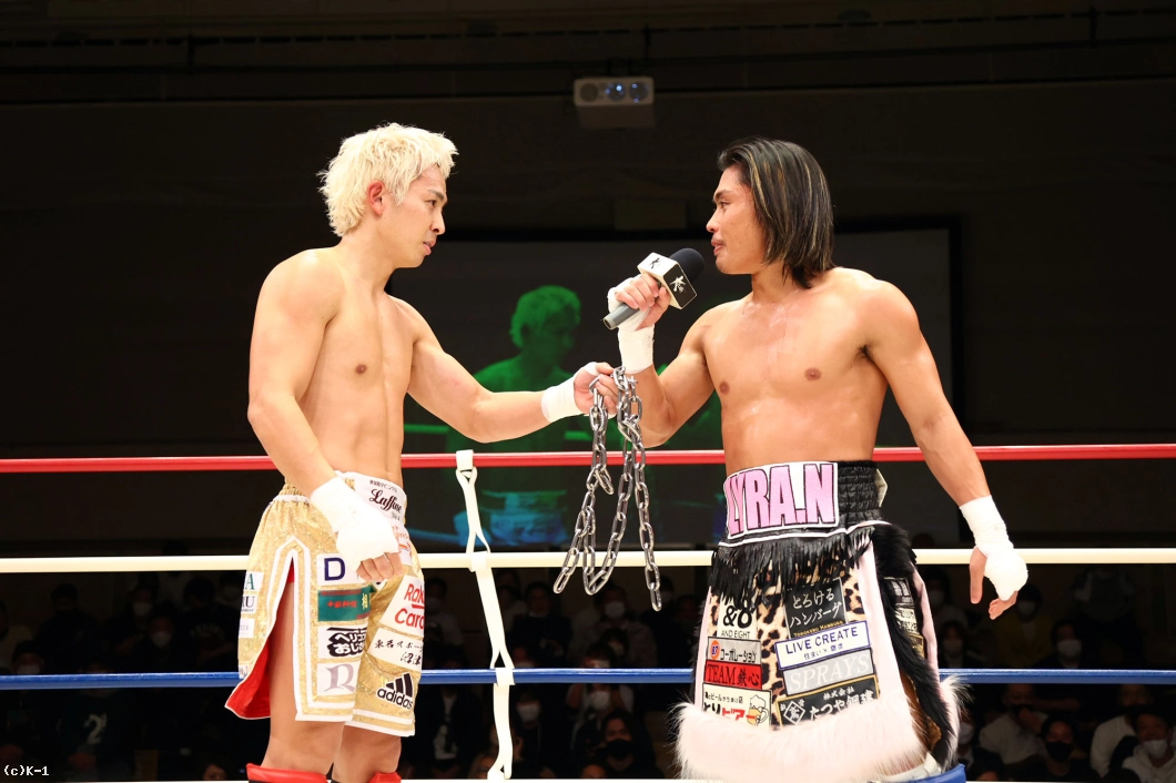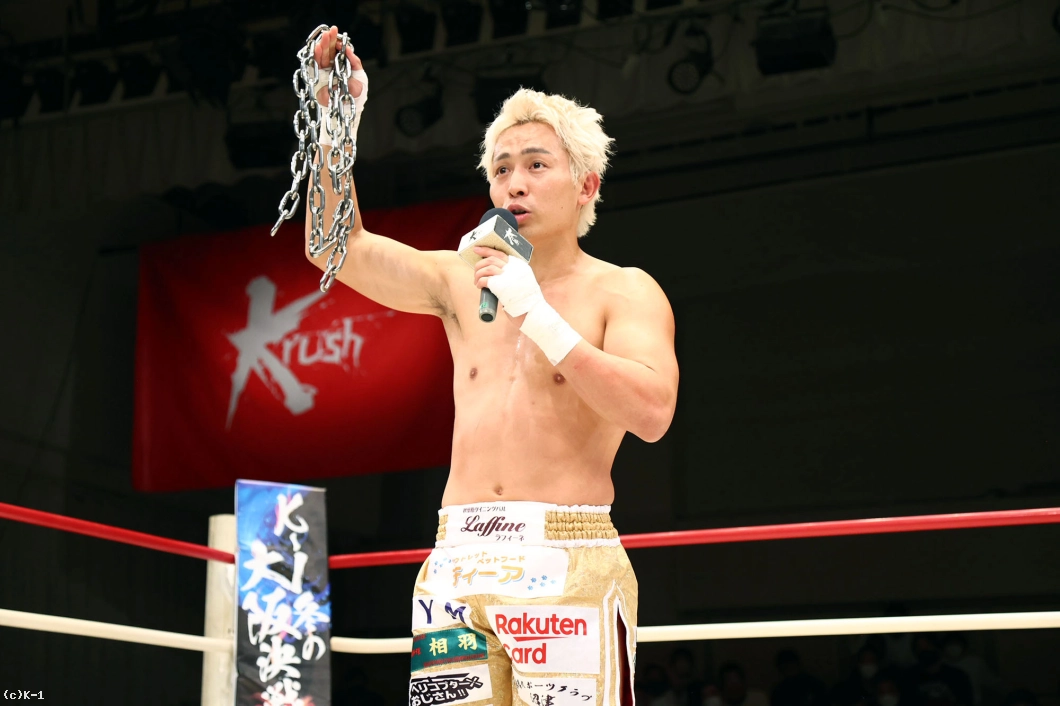 「急きょエキシビションになったんですけど、応援に駆けつけてくれたみなさん、K-1のみなさんにも感謝してます。吏羅は変則的で強いし、決まった時“うわっ”と思いました。1Rにハイをもらったんですけど、吏羅はKRESTの中で一番戦いたくない相手で、でも今日1ヵ所発見しました。僕鎖を辞めたんですけど、その後継者を探していて、吏羅選手しかいないんです。今日受け継いでもらおうと思ってます」