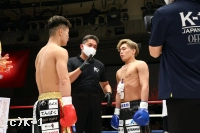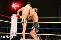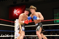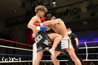 児玉はその後も右ストレート、飛びヒザ、左フックと攻撃を散らし、昇也にダメージを蓄積する。そして昇也に胴回し回転蹴りを見せラウンドを終える。