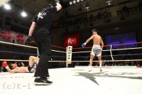 1R、両者ともにカーフ・ミドルキックを蹴り合うが、松山が左ハイを当てる。岡嶋も右ストレートを当て返すが、松山は右ボディ打ちで岡嶋を嫌がらせる。さらに松山はボディを効かせカーフキック、そして掛け蹴りを見せた後で左ハイキックを一閃。これが岡嶋をとらえ、岡嶋はそのままばったりと崩れ落ち、レフェリーが試合をストップ。松山がインパクト十分なKO勝利を上げた。