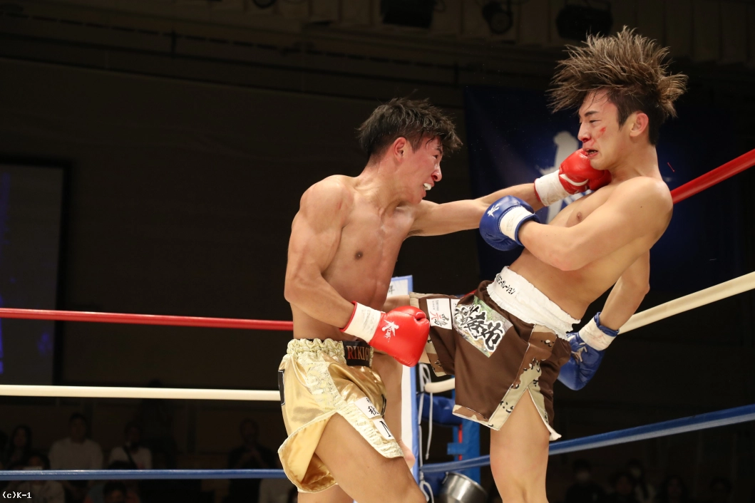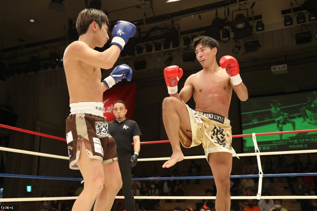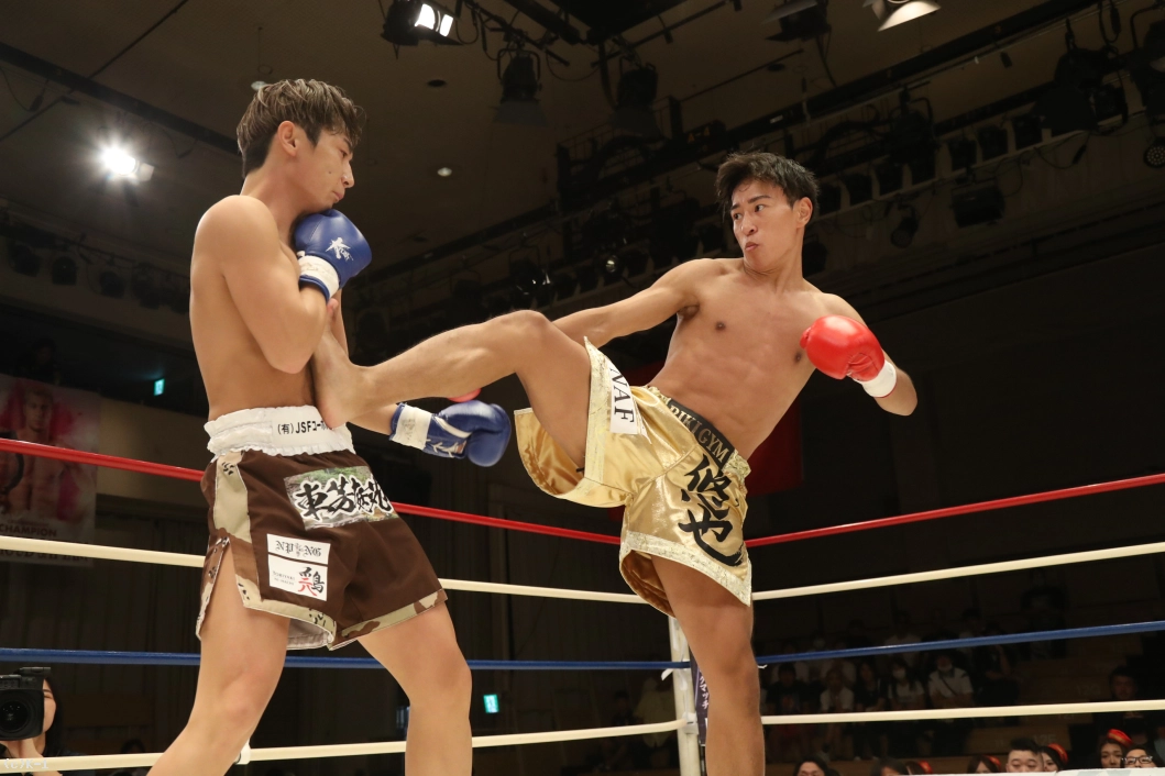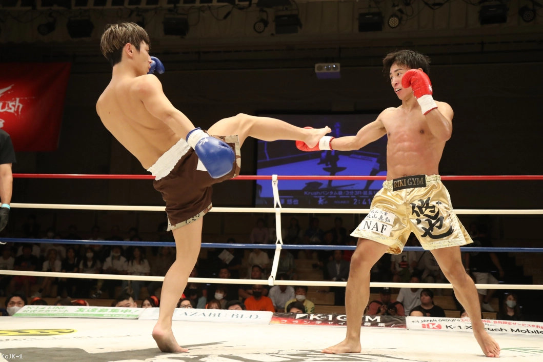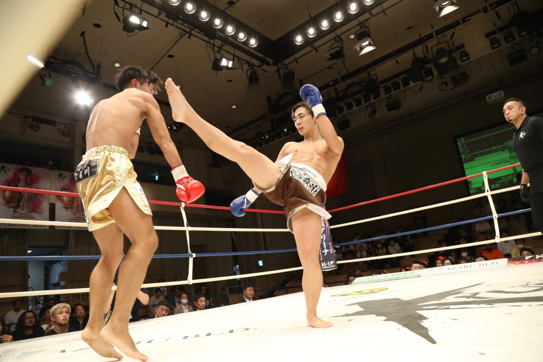 2Rも鵜澤は左ミドル・前蹴りと蹴りから入り、左ストレート・右フックとパンチに連係。白幡も右ストレート・左フックで応戦する。鵜澤は離れると左ミドル・左右の前蹴りで白幡を近づかせず、パンチの距離ではストレートとジャブを当てる。