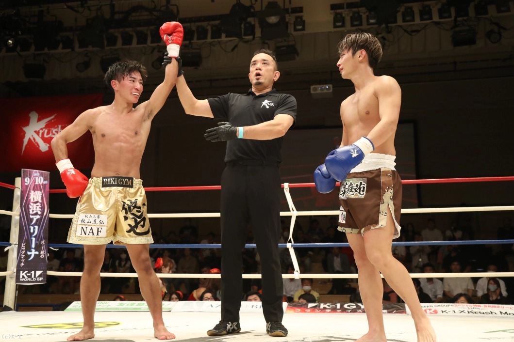 3R、左ハイを当てた鵜澤はそこからパンチの連打に入り、左ストレートで白幡からダウンを奪う。立ち上がった白幡に対し、鵜澤はミドル・ローと冷静に攻撃を散らす。そこから左ストレートを突き刺し2度目のダウンを奪取。鵜澤は試合を終わらせんと襲い掛かるが、白幡は右クロスをヒット。さらに白幡は右ストレートを当て鵜澤に鼻血を出させる。判定は30−25、30−25、30−25の3−0で鵜澤。2度のダウンを奪い、白幡を下した。