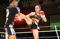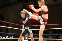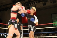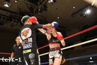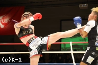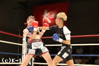 3R、パンチで突進する青木。ケイトはガードを固めてジャブとヒザ蹴りで迎え撃ち、距離が離れると左右のハイキックを狙う。2Rにダウンを奪ったケイトが大差の判定勝利を収めた。