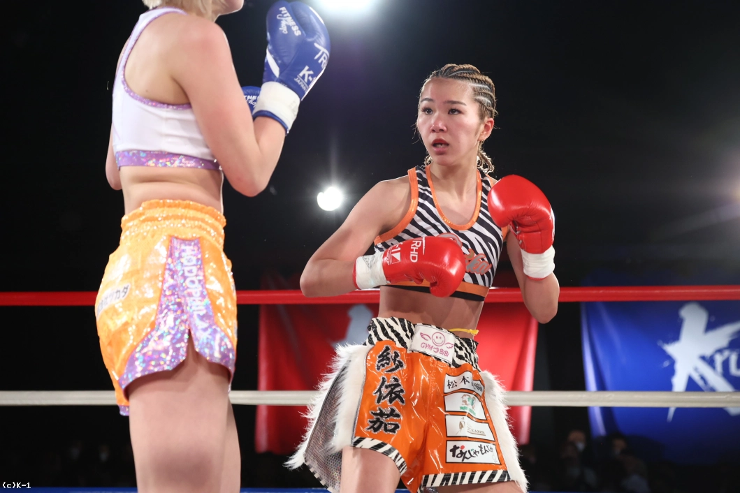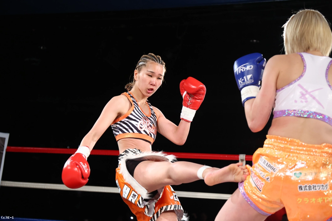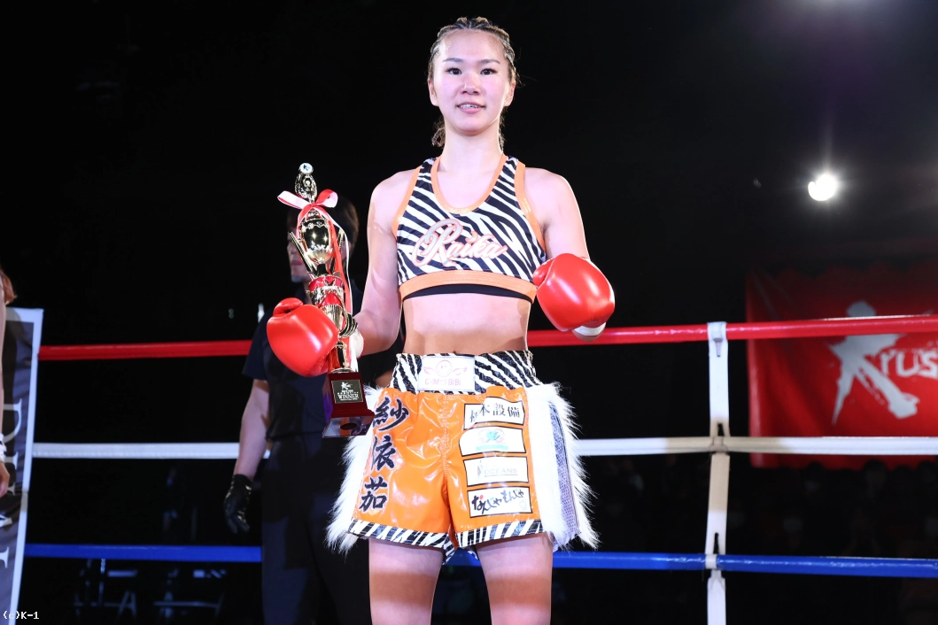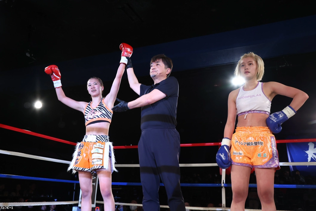 3R、紗依茄はKihoとの距離を保ち、そこからミドル、踏み込んでのストレート。Kihoの前進にジャブ、前蹴りを合わせて機先を制し、紗依茄は前蹴りで大きくKihoを転倒させる。判定は30-29、30-28、30-28の3-0で紗依茄。的確に距離を取って戦い勝利した。
