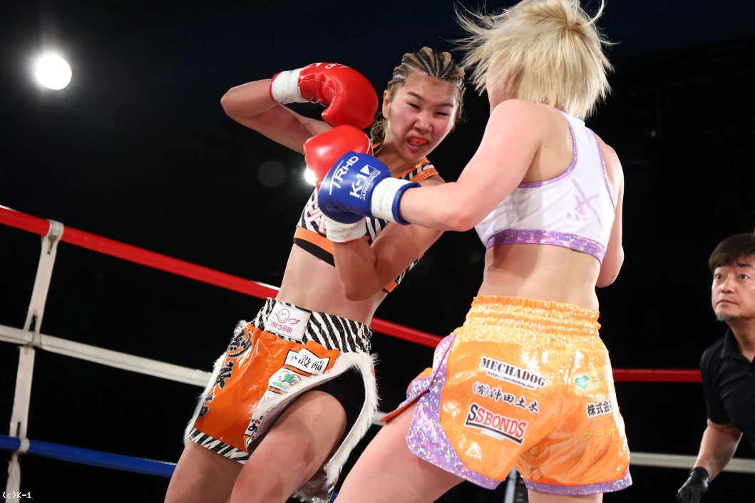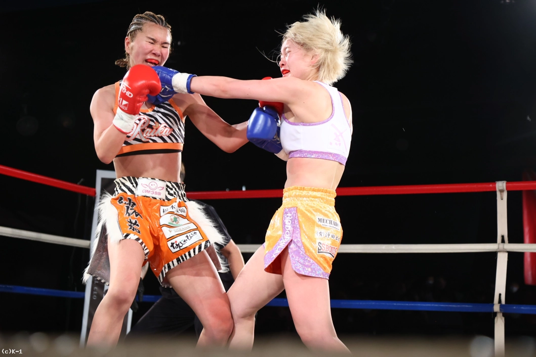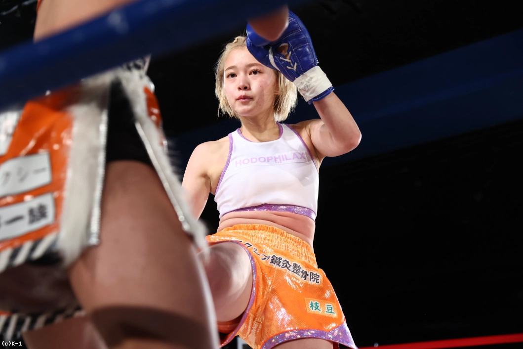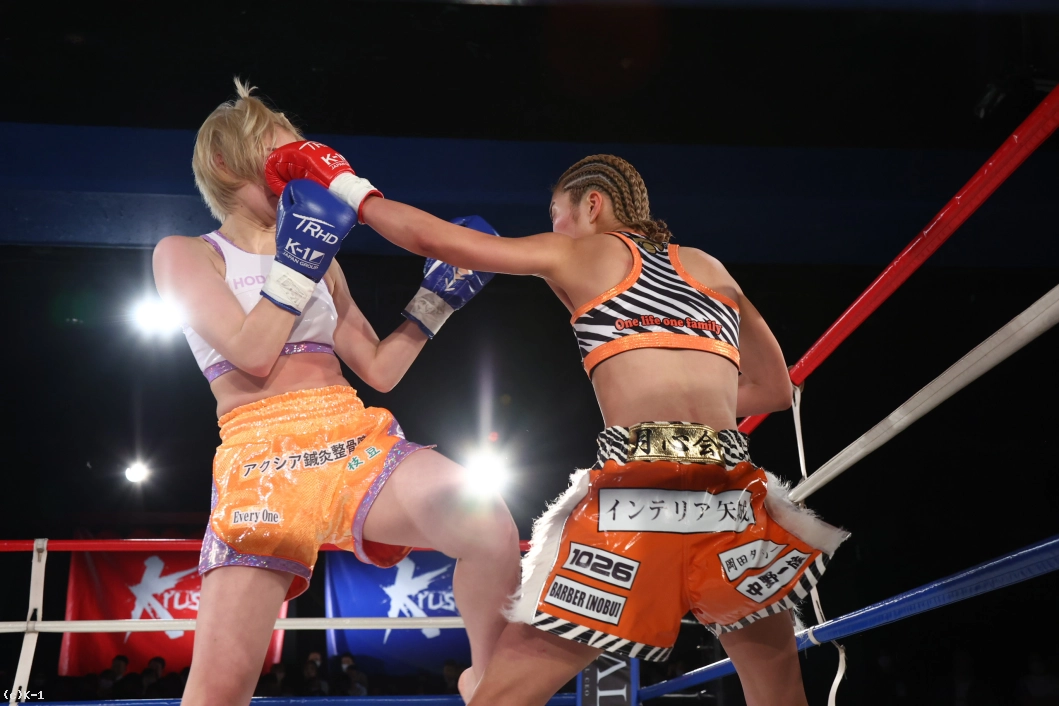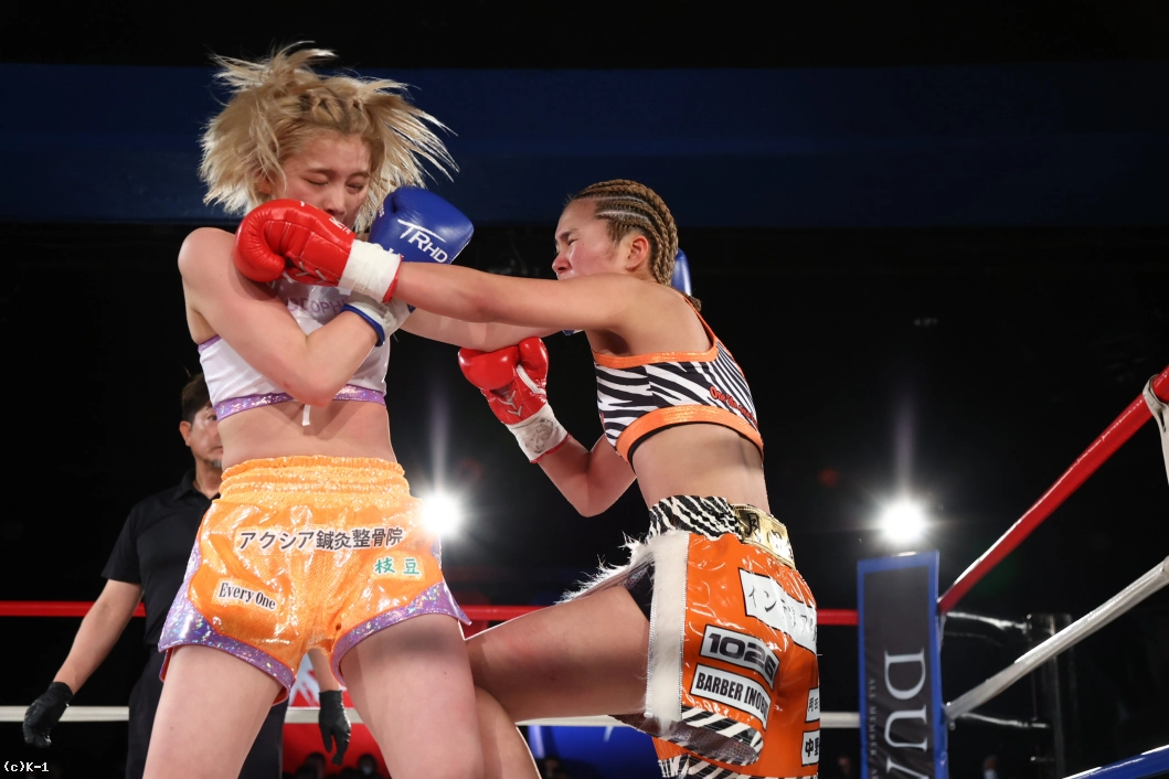 3R、紗依茄はKihoとの距離を保ち、そこからミドル、踏み込んでのストレート。Kihoの前進にジャブ、前蹴りを合わせて機先を制し、紗依茄は前蹴りで大きくKihoを転倒させる。判定は30-29、30-28、30-28の3-0で紗依茄。的確に距離を取って戦い勝利した。
