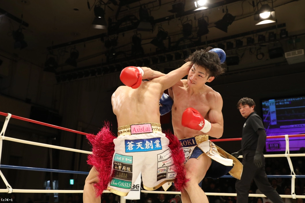 1R、横山は左の強いローキックを打ち込んでいく。横山の振りかぶった左ストレートに対し、髙橋も右のオーバーハンドをカウンターで返す。横山のハンドスピードとキレが印象に残るが、髙橋も攻撃しっかり見ている。