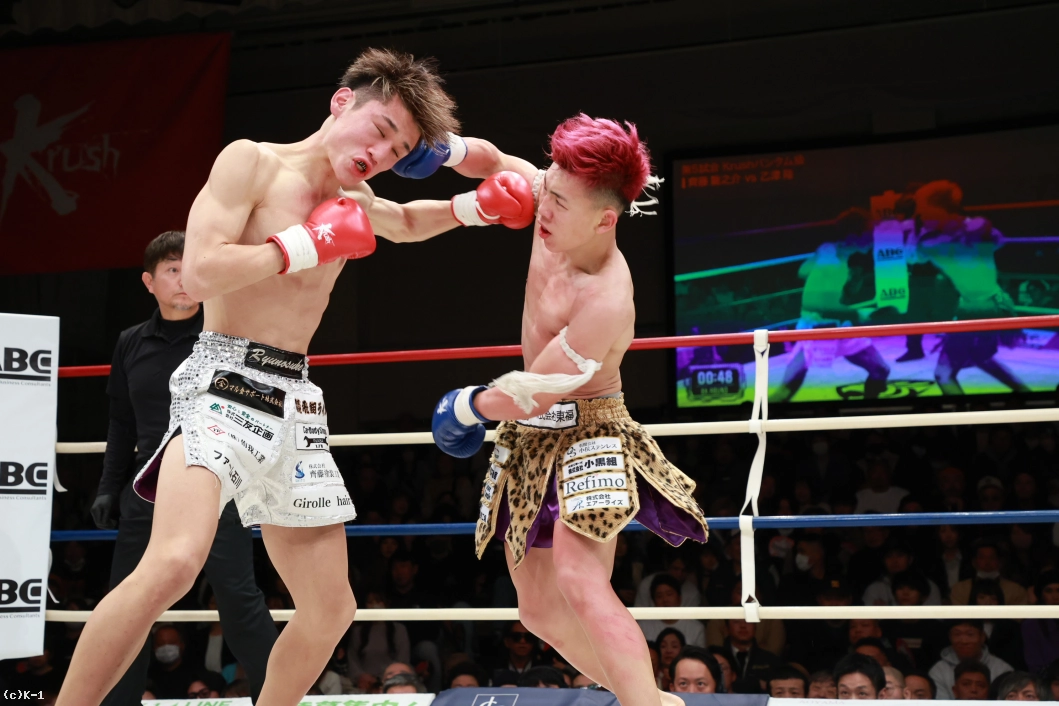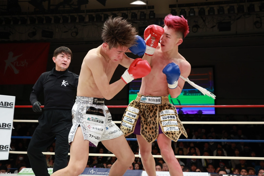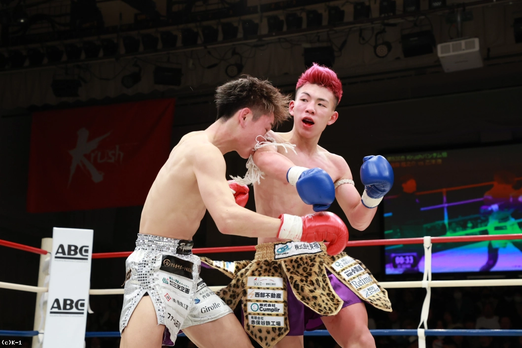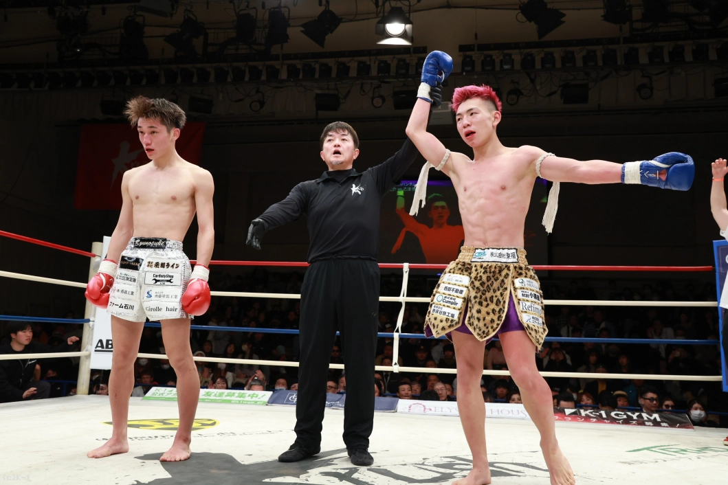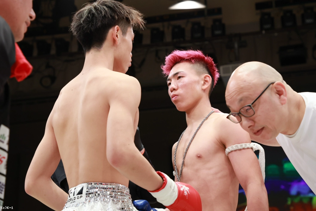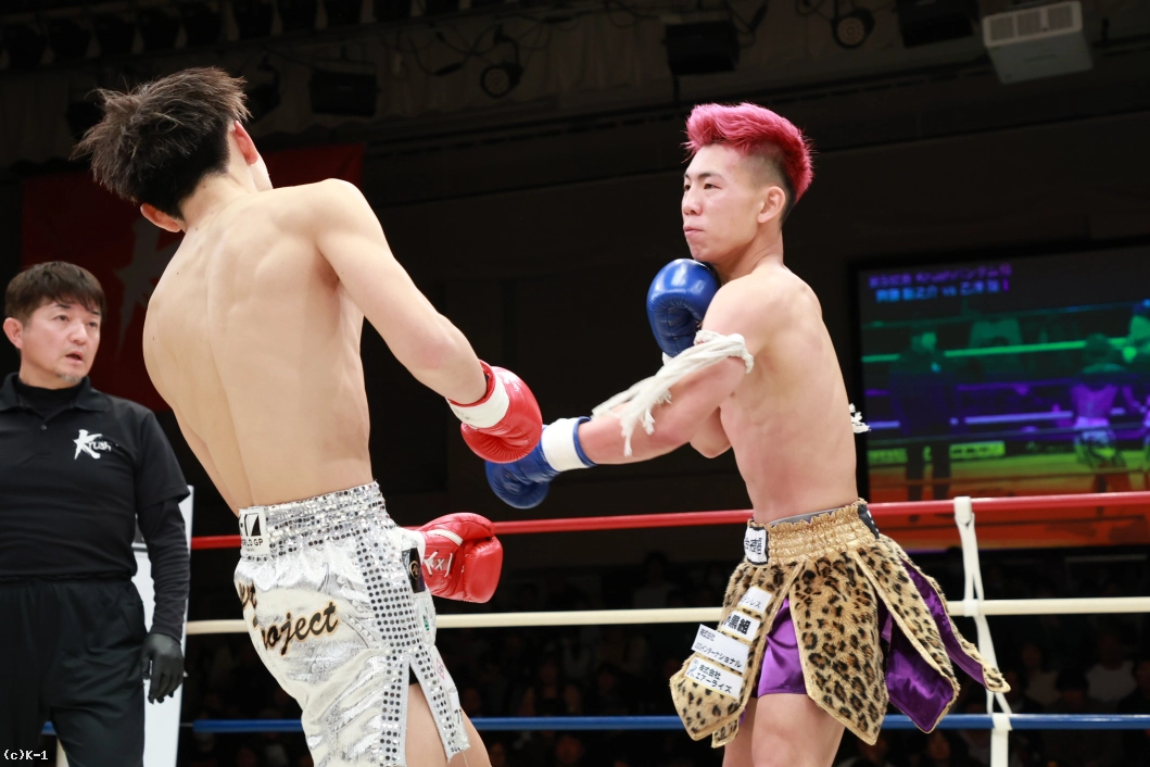 前進する乙津に対し、齊藤は下がりながら蹴りを出す。乙津の右ストレートがヒットし、齊藤は後退。齊藤もミドル、膝を返していくが、クリンチ際から右ストレートを当てダウンを奪う。齊藤も最後まで攻撃を出し続けるも、10-8、10-8、10-8の3-0で乙津が勝利を収めた。