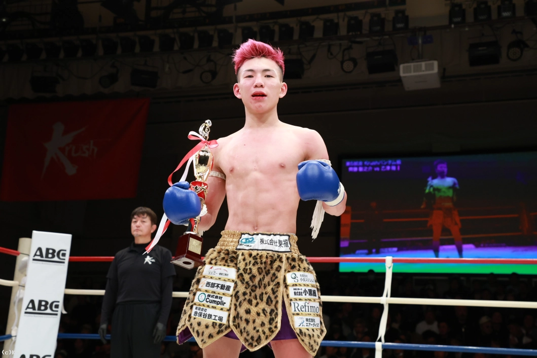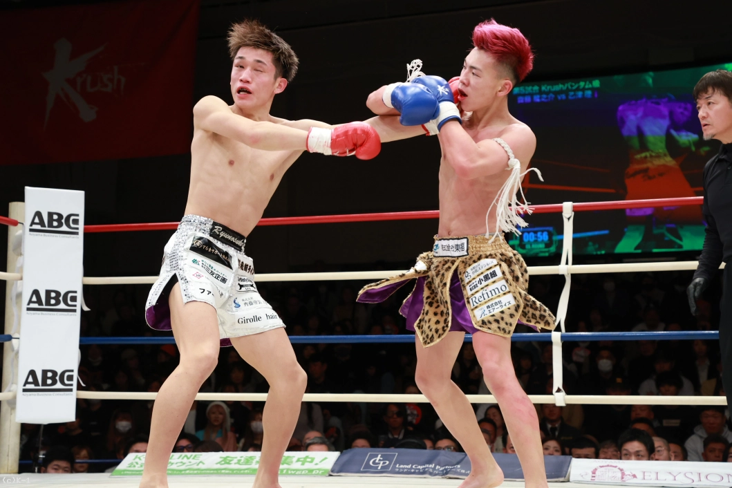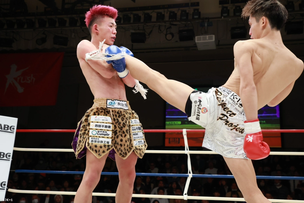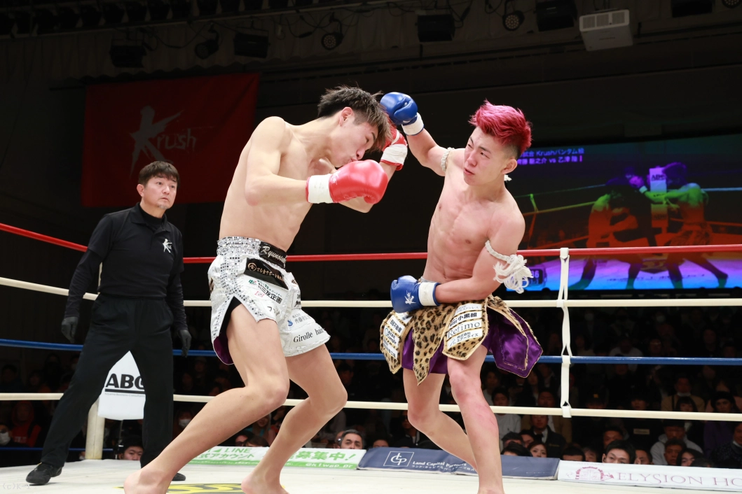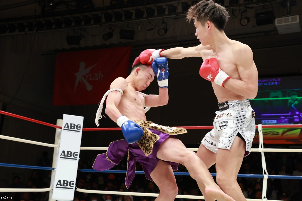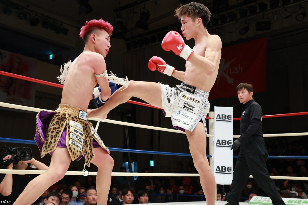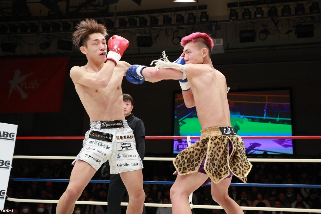 前進する乙津に対し、齊藤は下がりながら蹴りを出す。乙津の右ストレートがヒットし、齊藤は後退。齊藤もミドル、膝を返していくが、クリンチ際から右ストレートを当てダウンを奪う。齊藤も最後まで攻撃を出し続けるも、10-8、10-8、10-8の3-0で乙津が勝利を収めた。