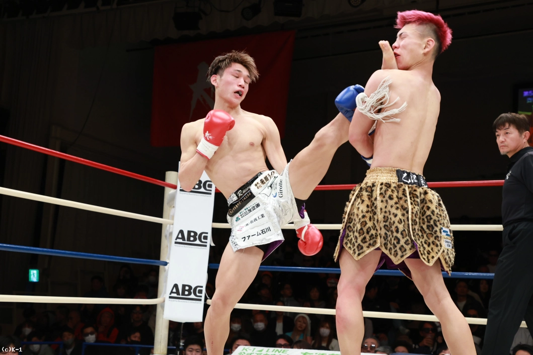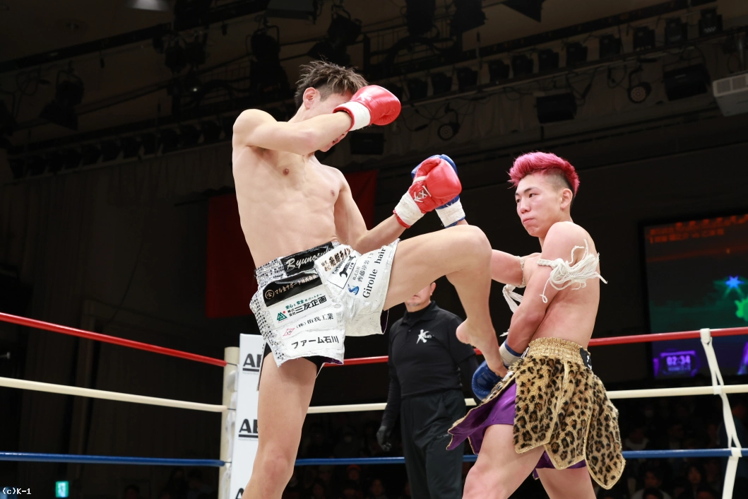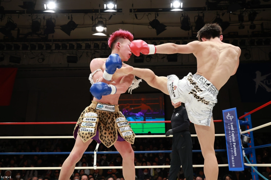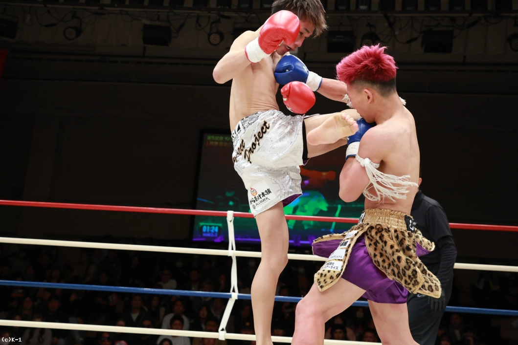 2R、乙津はパンチ中心、齊藤は蹴りも交ぜながら攻撃を出していく。次第に乙津のパンチが齊藤の顔面を捉え始めるが、齊藤も左ボディから左フックをヒットさせる。さらに齊藤はフェイントを入れながら、左ハイキックや右膝も出していく。だんだん齊藤のペースになってきたか。