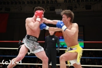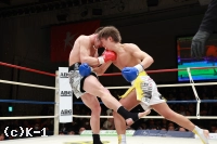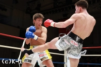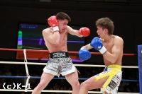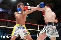 1R、お互いスピーディーなローキックを当てていく。SEIYAはステップワークでジリジリと三宅にプレッシャーを与えていく。三宅はなかなかパンチの距離に踏み込めないが、ラウンド終了間際、三宅が後ろ回し蹴りを空振りし、SEIYAが距離を詰めたところに、三宅が左フックを合わせてダウンを奪った。