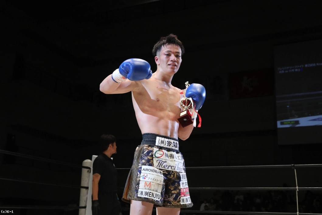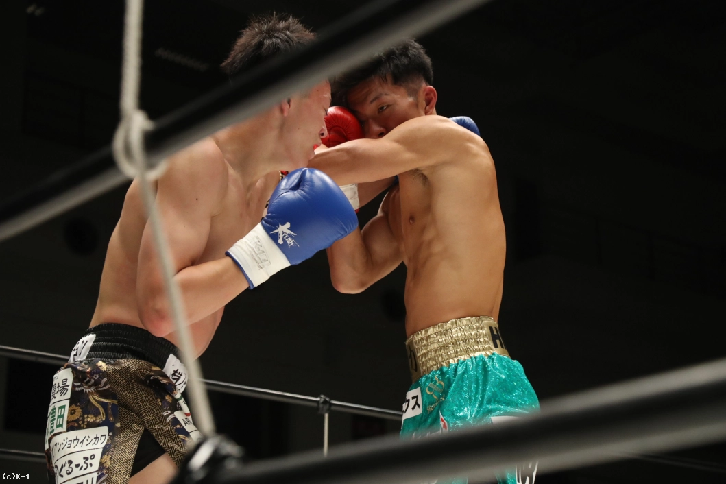 2R、小河が距離を詰め先にパンチを出していく。光弥もパンチで応戦していくが、小河のパンチで右眉周りをカット。傷が深いか、ドクターチェックで試合をストップ。地元愛知県出身の小河がデビュー戦をTKO勝利で飾った。