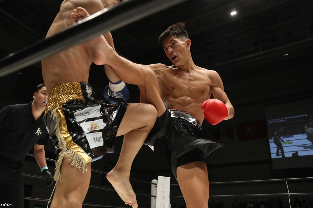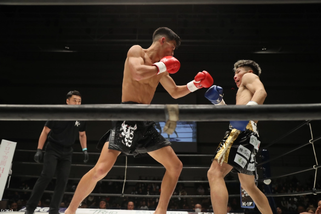2R、加藤が長い左ジャブ、右三日月蹴りで距離を測る。開の入り際に右ストレート。手数を減らさず気持ちの強さを見せる開に、加藤は冷静に左フック。コーナーを背負う開の左ジャブにあわせた左フックでダウンを奪うと、レフェリーが即座に試合をストップ。加藤が地元名古屋で初勝利を飾った。