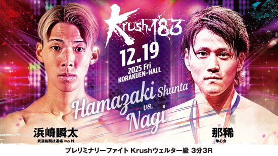 「Krush.183」12.19(金)後楽園 浜崎瞬太vs那稀 コメント公開! 「インでもアウトでも圧倒してKO勝ちしたい」(浜崎)vs「自分の持ち味を全部出しきり、勝つ」(那稀)