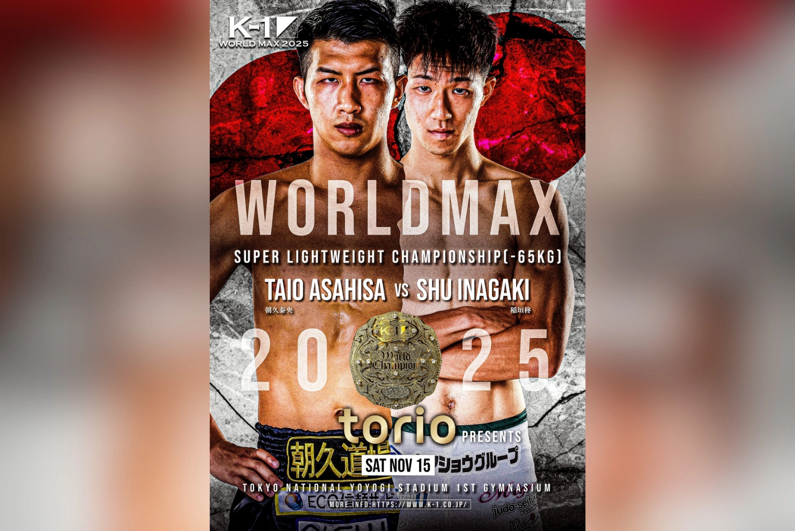 「K-1 WORLD MAX 2025」11月15日(土)代々木大会 朝久 泰央vs稲垣 柊 王座決定戦に『株式会社torio』の冠協賛が決定!